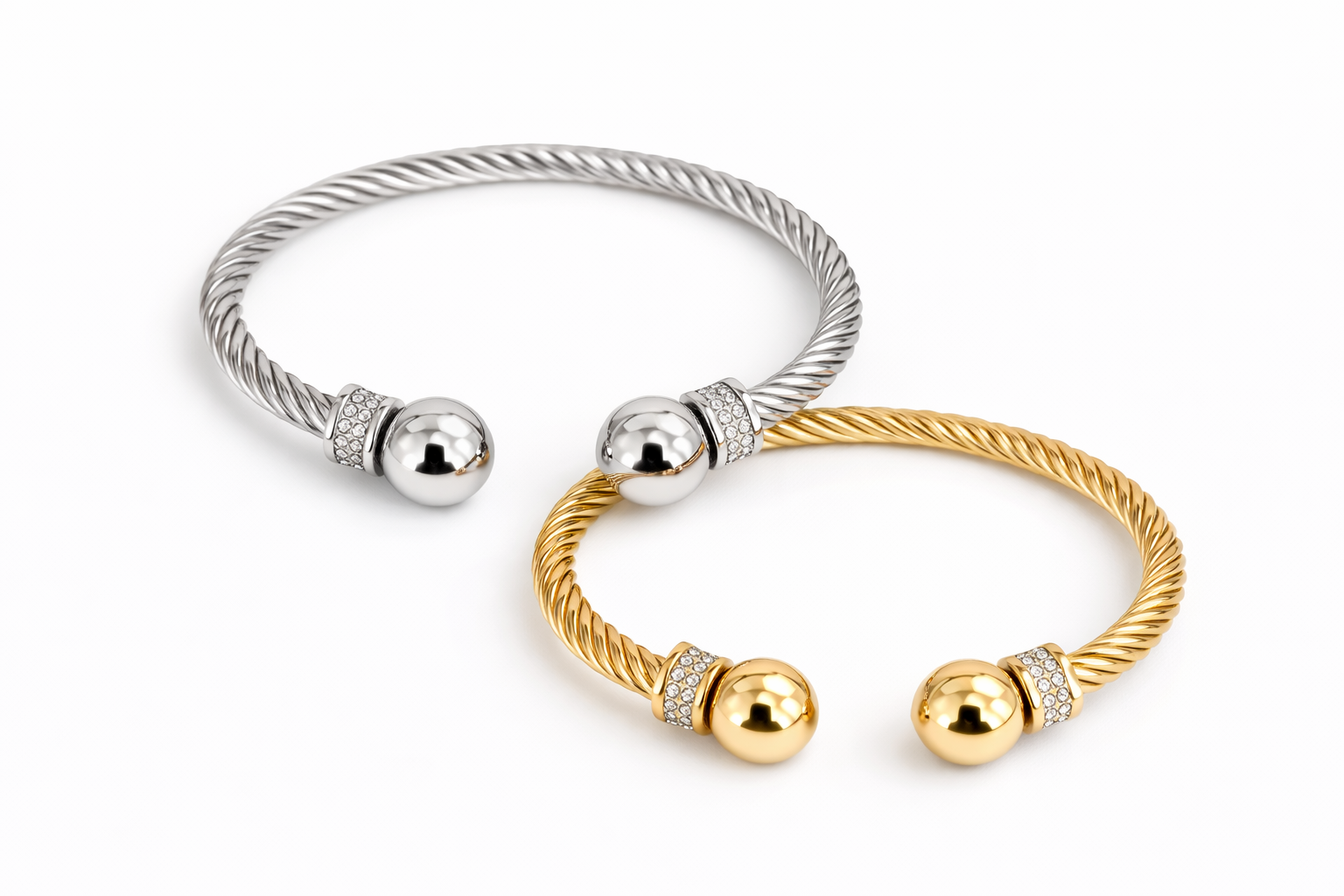 Ατσάλινη Χειροπέδα Cable με Στρας – Ασημί & Χρυσή