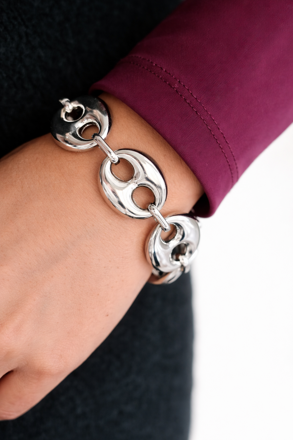 Ατσάλινο Βραχιόλι με Γεωμετρικούς Κρίκους