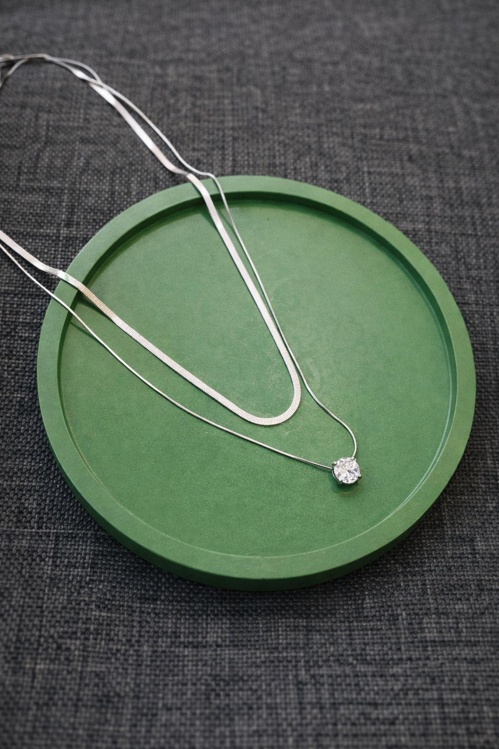 Διπλό Κολιέ Ασημί με Λαμπερό Ζιργκόν