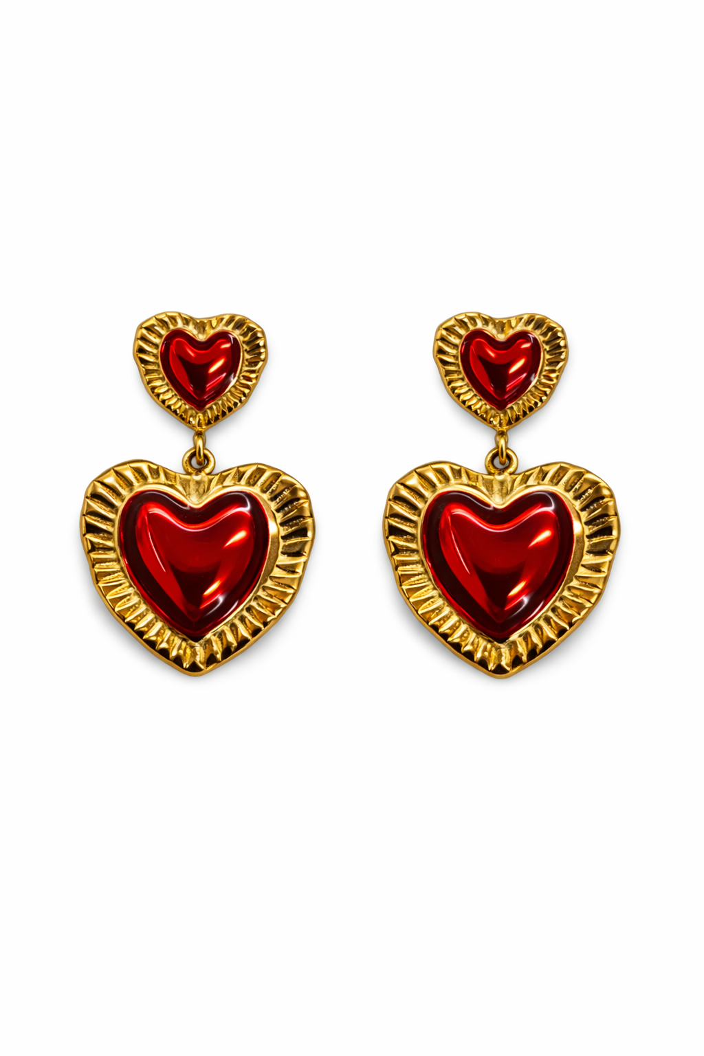 Scarlet Heart – Διπλά Σκουλαρίκια Καρδιά με Κόκκινο Σμάλτο