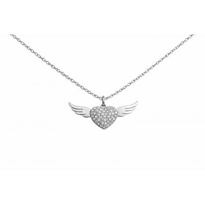 Ένα κόσμημα που συμβολίζει την αγάπη, την προστασία και την ελευθερία.Το κολιέ με καρδιά και φτερά είναι διακοσμημένο με λαμπερές λευκές πέτρες που χαρίζουν διακριτική λάμψη και κομψότητα.Η καρδιά εκφράζει το συναίσθημα, ενώ τα φτερά προσδίδουν έναν ρομαντικό και ονειρικό χαρακτήρα, κάνοντάς το ιδανικό δώρο για κάποιο αγαπημένο πρόσωπο. Φοριέται άν..