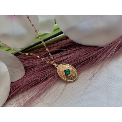 Κολιέ με πράσινη πέτρα κίτρινο χρυσό από ανοξείδωτο ατσάλι.Δεν μαυρίζει και δεν προκαλεί αλλεργίες...