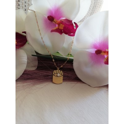 Κολιέ ταμπελάκι μάτι με πέρλα κίτρινο χρυσό από ανοξείδωτο ατσάλι.Δεν μαυρίζει και δεν προκαλεί αλλεργίες...