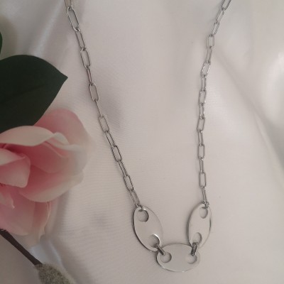 Αλυσίδα λαιμού από ανοξείδωτο ατσάλι σε ασημί.Δεν μαυρίζει και δεν προκαλεί αλλεργίες.Ανθεκτικό σε άρωμα και νερό...