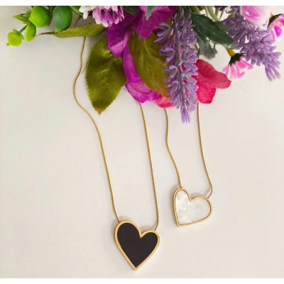 STAINLESS STEEL αλυσίδα λαιμού καρδιά λευκή και μαύρη σε κίτρινο χρυσό.