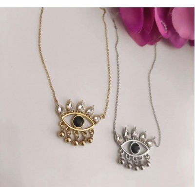 STAINLESS STEEL κολιέ εντυπωσιακό μάτι ασημί.