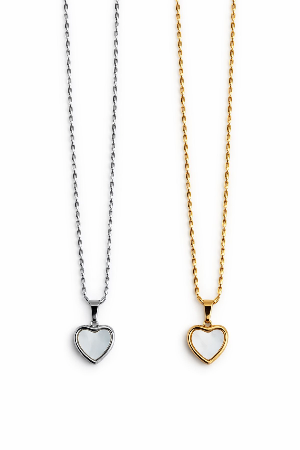 Κολιέ Καρδιά από Ανοξείδωτο Ατσάλι με Λευκό Σμάλτο