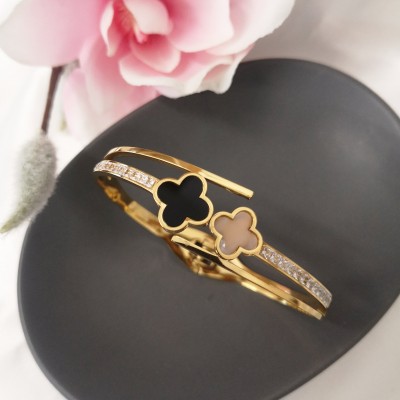STAINLESS STEEL βραχιόλι χεριού ανοιγόμενο με στρας σε κίτρινο χρυσό.