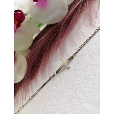 Βραχιόλι με σταυρό ασημί από ανοξείδωτο ατσάλι.Δεν μαυρίζει και δεν προκαλεί αλλεργίες...