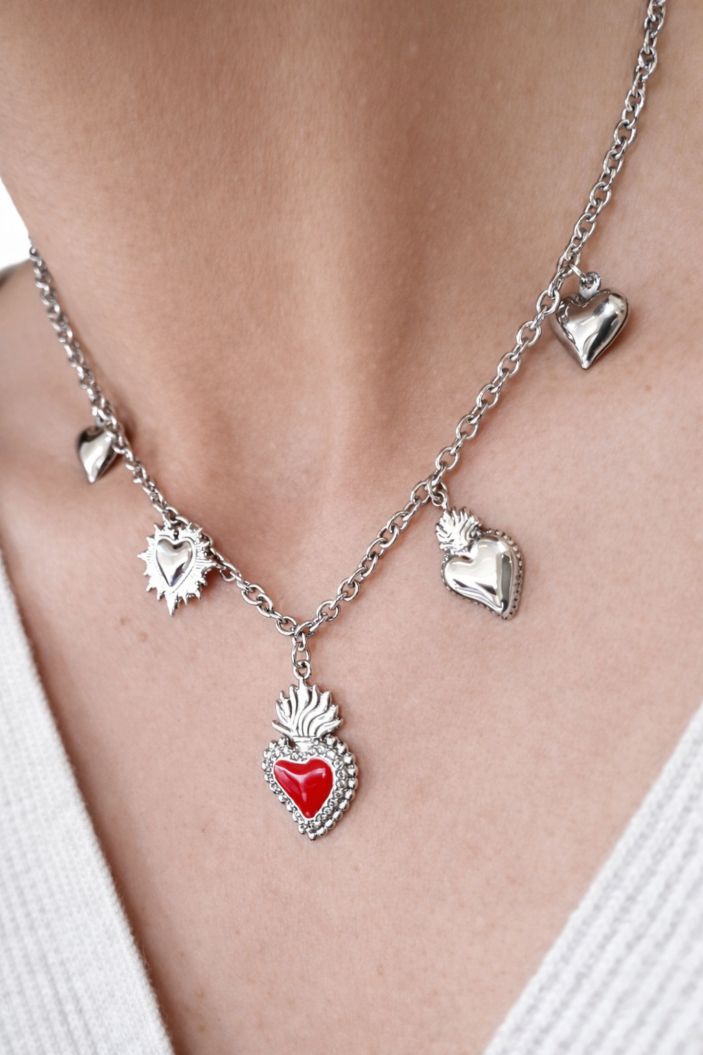 Ατσάλινο Κολιέ με Καρδιές & Κόκκινο Sacred Heart